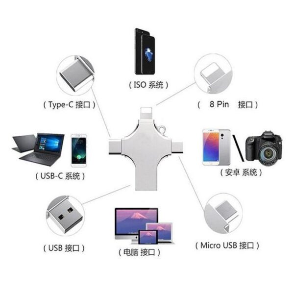 This 4-in-1 multifunctional flash drive combines multiple ports into a single compact design, allowing users to connect, transfer, and back up data seamlessly across different platforms. It’s ideal for users who work across various devices and need a universal data solution.
